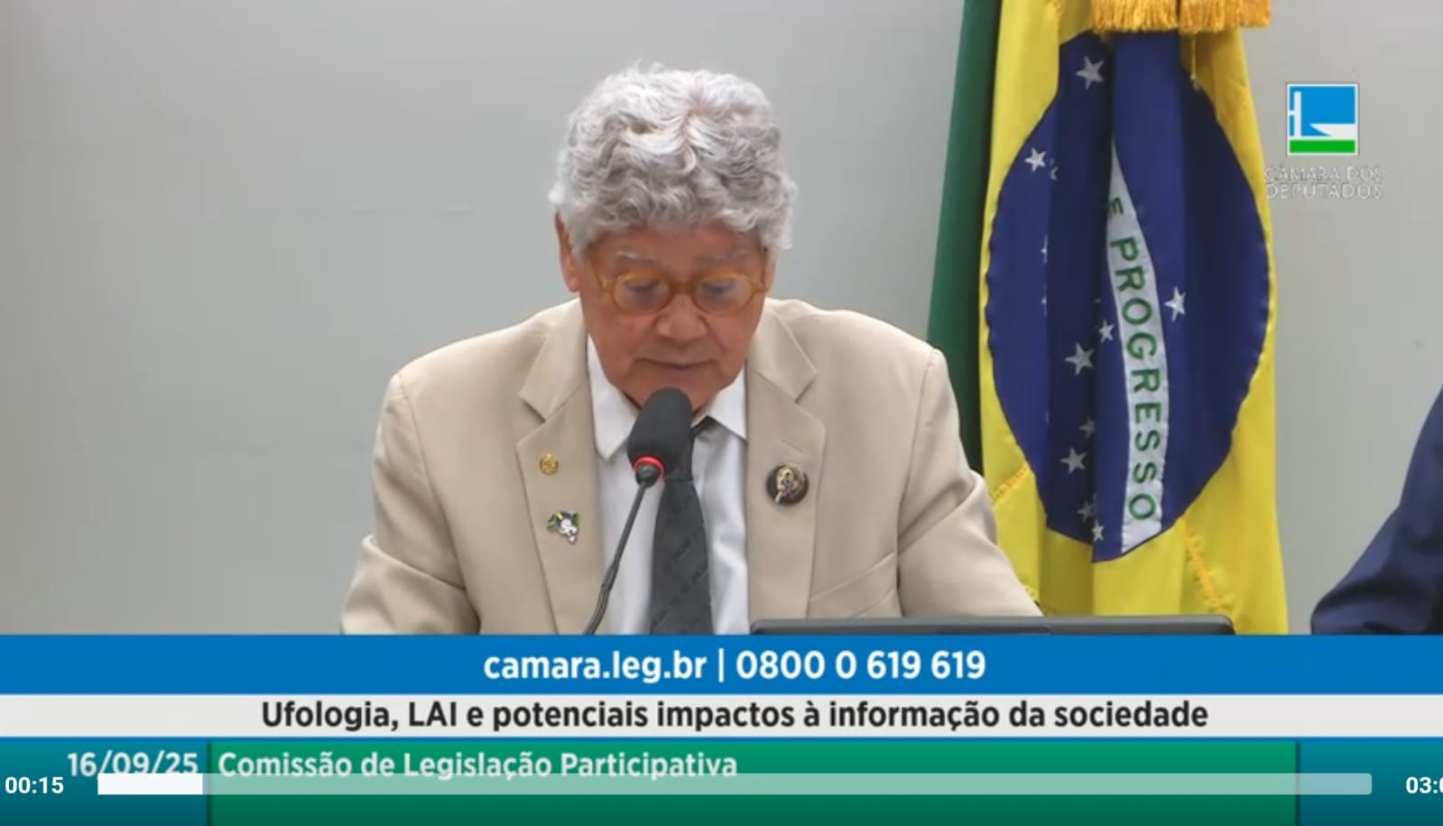 A Comissão de Legislação Participativa da Câmara dos Deputados realizou no dia 16 de setembro de 2025 uma audiência pública para tratar sobre Ufologia, dentro da perspectiva da Lei de Acesso à Informação (LAI) e os potenciais impactos na população que este assunto pode causar. A audiência foi convocada por requerimento do deputado Chico Alencar (PSOL/RJ), que é um notório interessado no tema e já fez três outros requerimentos a órgãos públicos solicitando informações sobre a presença de OVNIS em nosso país.
